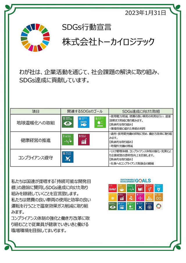 私たちは安全と安心の輸送を通じて、お客様のありがとうと社員の幸せを運びます。
